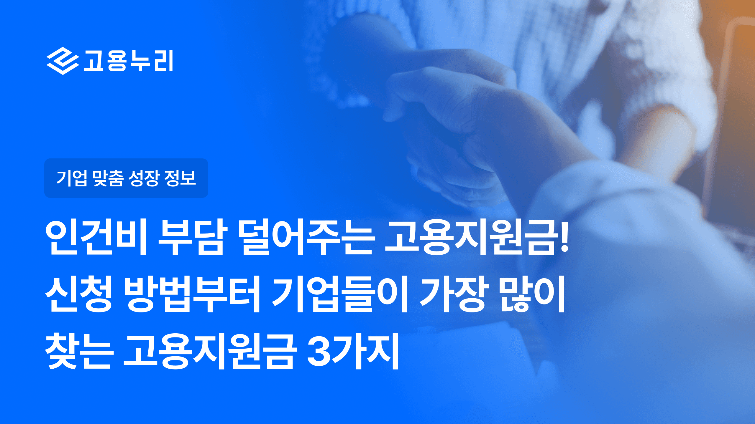 인건비 부담을 줄일 수 있는 고용지원금 가이드. 기업들이 가장 많이 찾는 고용지원금 3가지와 지원 자격 요건, 신청 방법을 정리했습니다.